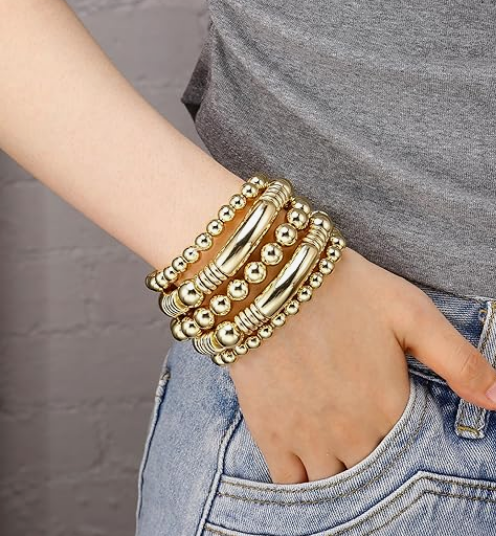 What sets these bangles apart is their stretchable design, ensuring a comfortable fit for any wrist size without compromising on style. Whether you’re dressing up for a special occasion or adding a bit of sparkle to your everyday look, these bracelets are the perfect accessory to elevate your outfit. Their timeless appeal makes them a must-have for any jewelry lover, and they can be worn solo or stacked together for a bold, layered effect.
