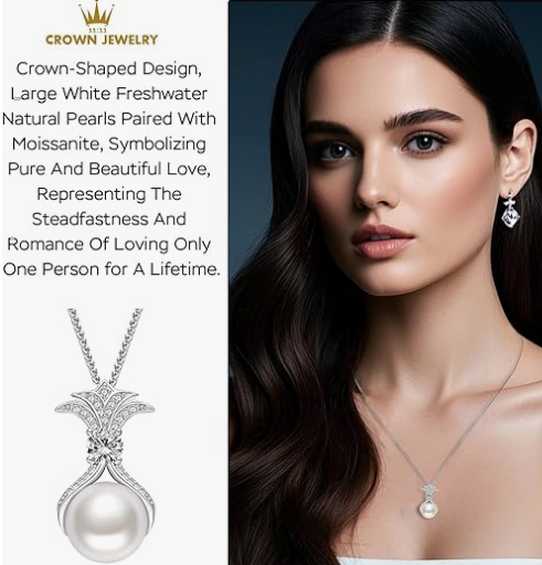 White Freshwater Pearl 12-13mm, 925 sterling silver. Crown-shaped design, featuring large white natural pearls combined with moissanite stones, symbolizing pure and beautiful love, representing the steadfastness and romance of loving only one person for a lifetime, showcasing a sophisticated and elegant feminine charm, with a smooth craftsmanship that ensures comfortable wear; A large white pearl necklace is a beautiful jewelry for her wife, Christmas gift, Mother’s Day gift, ladies birthday gift, wife’s girlfriend anniversary, daughter son romantic love Valentine’s Day gift, or just a Valentine’s Day gift for ladies. The white pearl necklace is carefully wrapped in delicate boxes, and we use double boxes to protect all items in good condition. No additional packaging is required. This ladies jewelry gift is perfect for anniversary, birthday, Mother’s Day, Valentine’s Day, Christmas, wedding, engagement, graduation, memorial friendship, Thanksgiving and more.